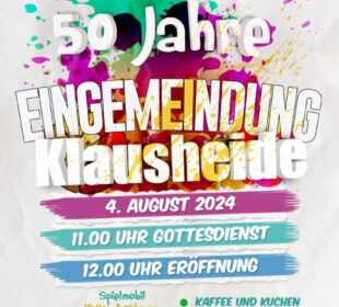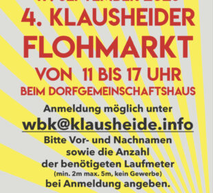 Am Wochenende findet erneut der Klausheider Flohmarkt statt. In der Zeit von 11-17 Uhr können am Sonntag, den 22.9. erneut Schnäppchenjäger auf ...50 Jahre Eingemeindung
